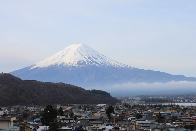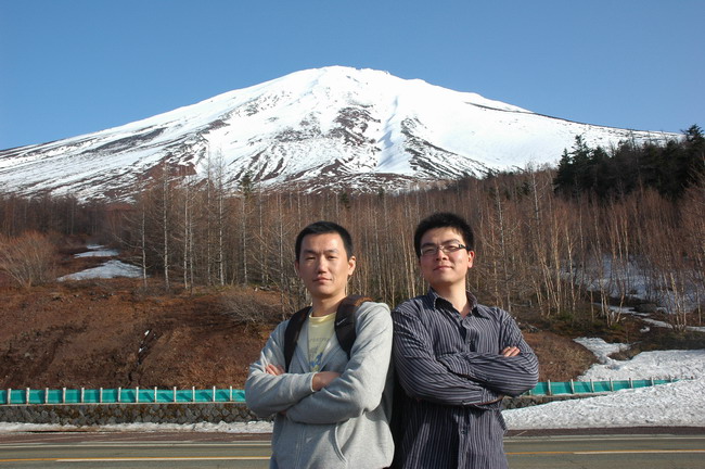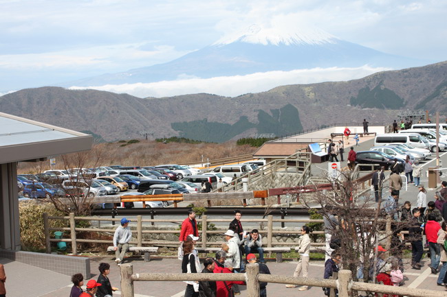 看富士山得有好的天氣。因其常常鎖在煙雨中而不得窺其貌。我們的運氣不錯,天氣晴朗。富士山白雪做冠,彩云為巾,身披綠彩,平地突兀,亭亭玉立,遠遠地迎接來自一衣帶水之隔的鄰邦來客。驅車順蜿蜒的山路,到富士山五合目。這里是盤山公路的終點,再往上積雪滿坡,只有七、八、九三個月才開放可讓旅客攀登。氣溫也驟降到冰點,正是一山有四季。仰望山頂,也被霧所遮,身在山中,反倒不識其貌了。